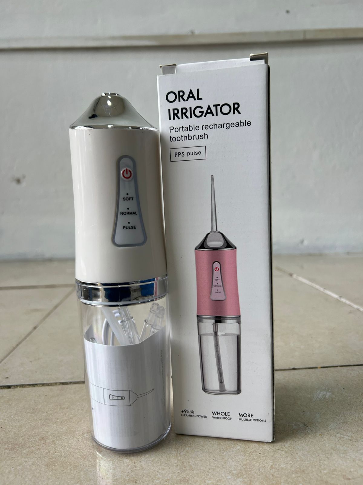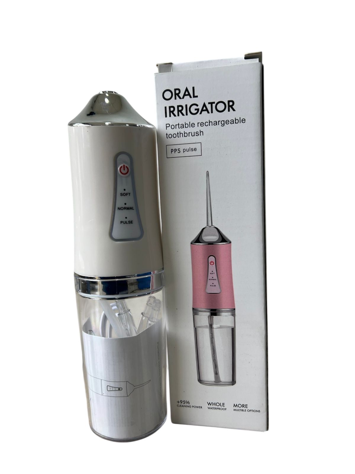 2. El irrigador oral tiene 3 modos disponibles, incluyendo modo suave, fuerte y de pulso. Al usarlo 2-3 veces al día, puede prevenir la caries dental/atrofia gingival/sangrado de encías/cálculo dental, etc.